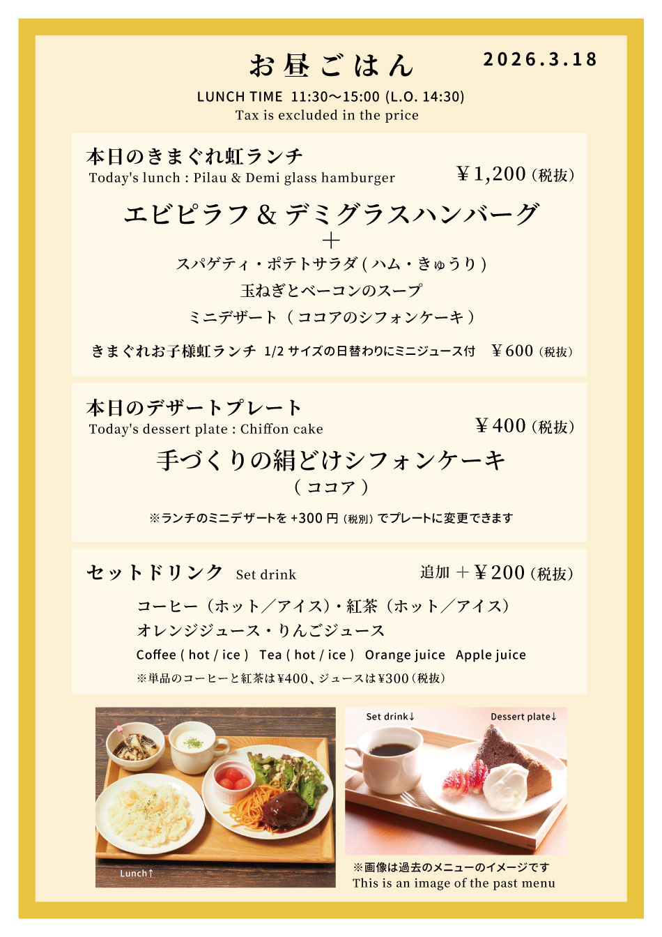 Daily lunch, Dessert plate, and Drink cafe. & We sell jeans from Okayama Kojima.